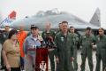 Вођа руске акро-групе потпуковник Сергеј Осјајкин, обраћајући се у име осмочлане посаде која је са шест ваздухоплова допутовала у српску престоницу, подсетио је на важност обележавања 70 година ослобођења Београда од фашистичких снага, али и на бројне жртве међу партизанима и руским војницима који су учествовали у том ослобађању.